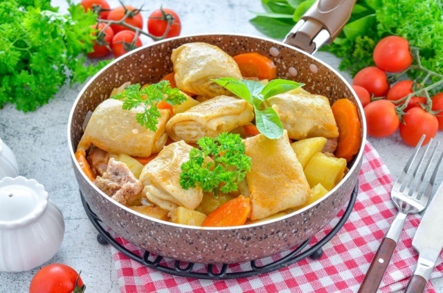 Предлагаем вам насладиться необычным сочетанием второго блюда с гарниром в одном изысканном рецепте — штруделе с мясом и картошкой. Это идеальный выбор для плотного ужина, который порадует всю семью. Готовится такое угощение из рулетиков из пресного теста, которые после варки становятся невероятно мягкими и пышными.
