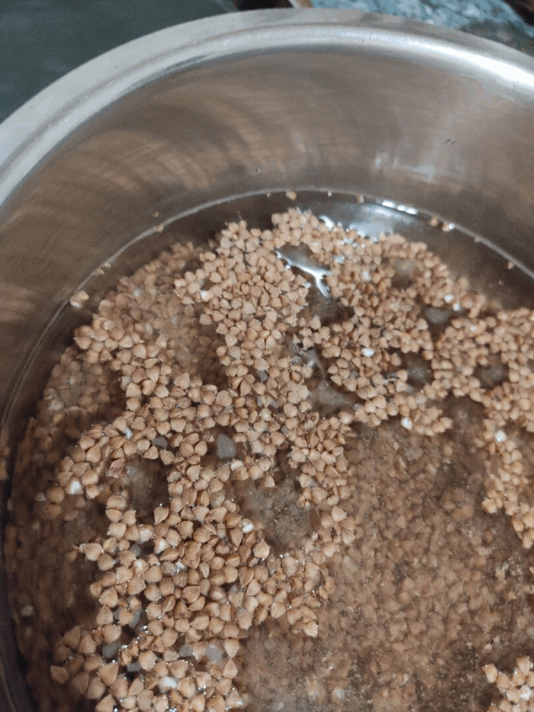 Для начала стоит отварить гречку. На 350 граммов крупы потребуется один литр воды. Гречку нужно тщательно промыть, после чего отправить вариться до готовности.