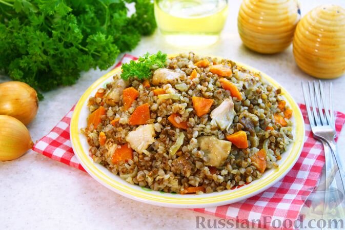 - Гречка с курицей в рукаве: Нежные куриные бёдра, запечённые с гречкой, луковицей и морковью, создают идеальное сочетание, наполняя комнату аппетитными ароматами.