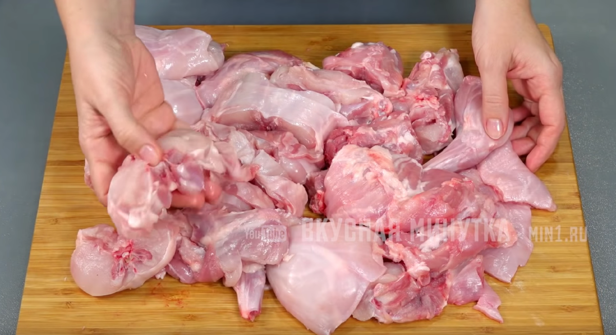 Важной частью процесса является осмотр и обработка мяса. Для рецепта подойдет кролик весом около 3,5 кг. Сначала необходимо удалить лишний жир, почки и легкие, которые можно сохранить для других блюд. Затем кролика нарезают на порционные кусочки.