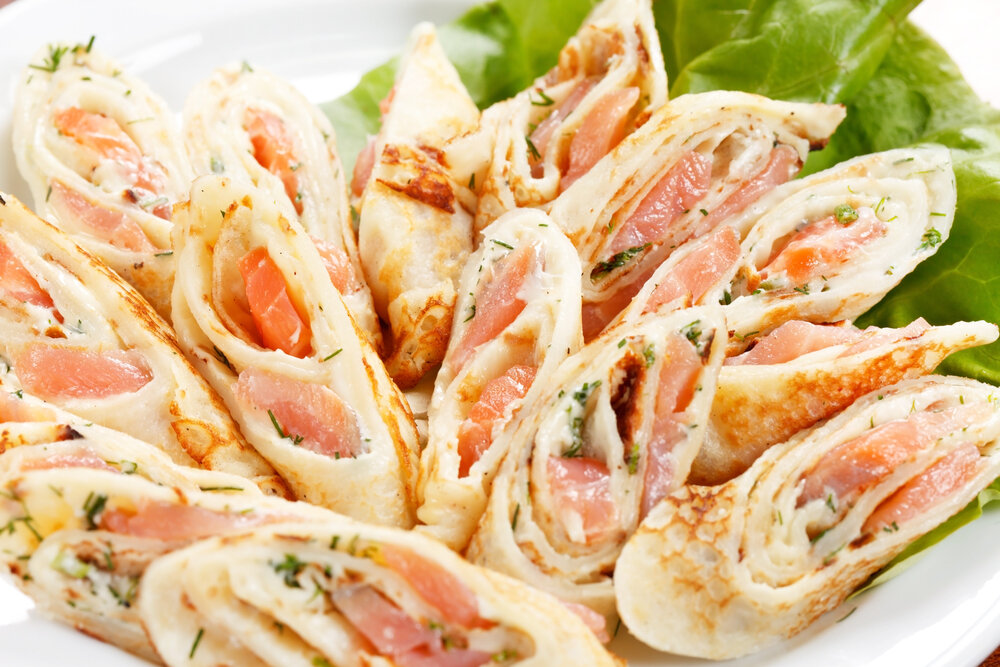 Блинчики с сыром и семгой