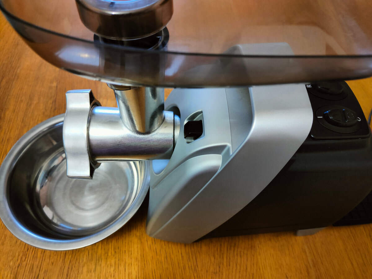 - Мощный мотор: Позволяет обрабатывать даже плотные куски мяса, исключая их перебор.