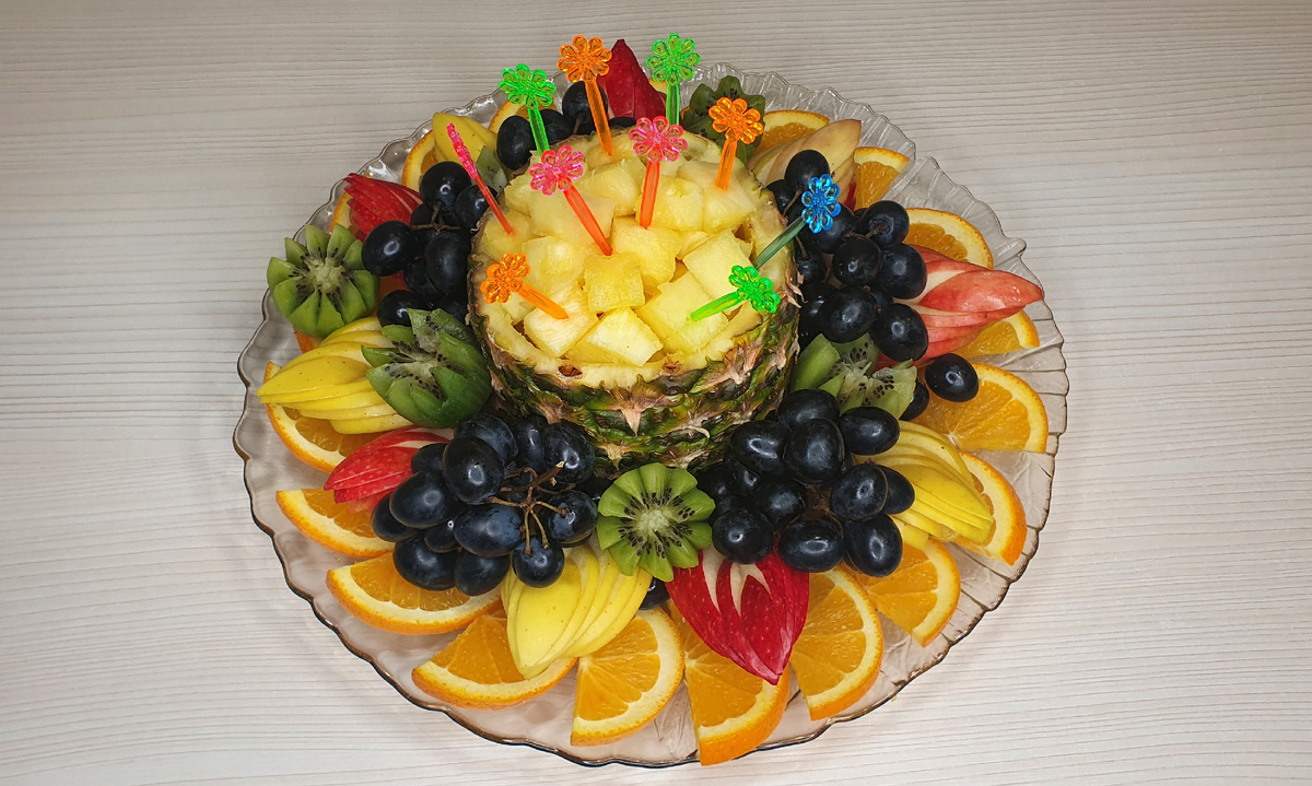 Для красоты и удобства соедините фруктовую нарезку с помощью шпажек. И вот ваша эффектная фруктовая нарезка готова к подаче! Готовьтесь получать комплименты от гостей и наслаждаться удивительной атмосферой праздника!