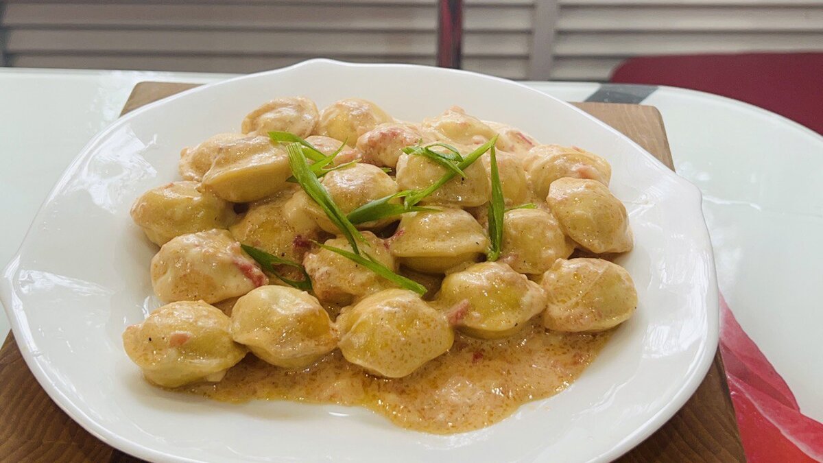 Теперь пельмени в томатно-сырной заливке готовы, и все, что остается — это насладиться этим домашним угощением. Приятного аппетита!