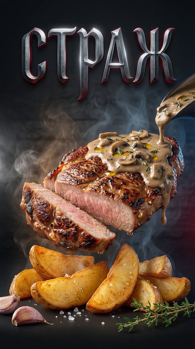 Нежный свиной стейк с аппетитной корочкой, покрытый насыщенным грибным соусом с кремовой текстурой и дополняемый картофелем, запеченным по-деревенски — это именно то, что нужно, чтобы восстановить силы после тяжелого дня.