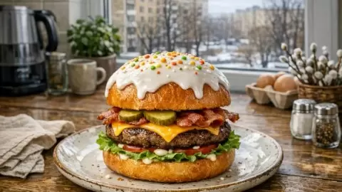 Пасхальная выпечка претерпевает неожиданные изменения. Вместо традиционных сладких угощений на праздничном столе всё чаще можно встретить интересные гибриды. Одним из самых обсуждаемых новшеств становится кулич-чизбургер — блюдо, которое, кажется, нарушает все устои.