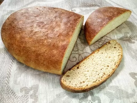 8. Готовый хлеб выньте из формы, остудите на решетке и смачивайте верх теплой водой.