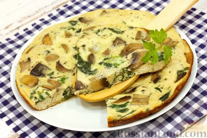 - Омлет с грибами и шпинатом: Питательный и насыщенный вкус делает это блюдо идеальным началом дня. Шампиньоны и свежий шпинат создают удивительный дуэт, который порадует даже самых искушенных гурманов.