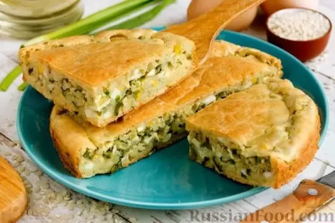 Не забудьте про заливной пирог с рисом, яйцами и зелёным луком. Это идеальная закуска для тех, кто ценит как несладкие, так и простые в приготовлении блюда. Тесто не требует ни раскатывания, ни длительного ожидания расстойки, а начинка будет сытной и ароматной.