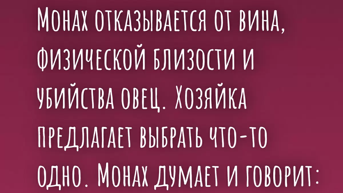 Иногда алкоголь помогает взглянуть на мир с другой стороны. На приеме у психолога мужчина жалуется: «Я не могу остановиться пить вино». На что врач советует: «А вы пробовали не начинать?» «Пробовал, но не помогает», — отвечает пациент. Это показывает, как иногда трудно вернуться к норме.