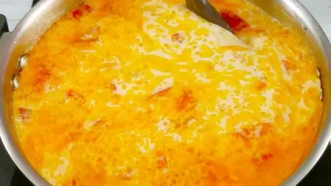 Затем введите нарезанные помидоры, добавьте черный перец и влейте кипяток. Доведите до кипения и варите на медленном огне около 10 минут. Затем добавьте картофель, соль и продолжайте готовить на минимальном огне еще 10 минут.