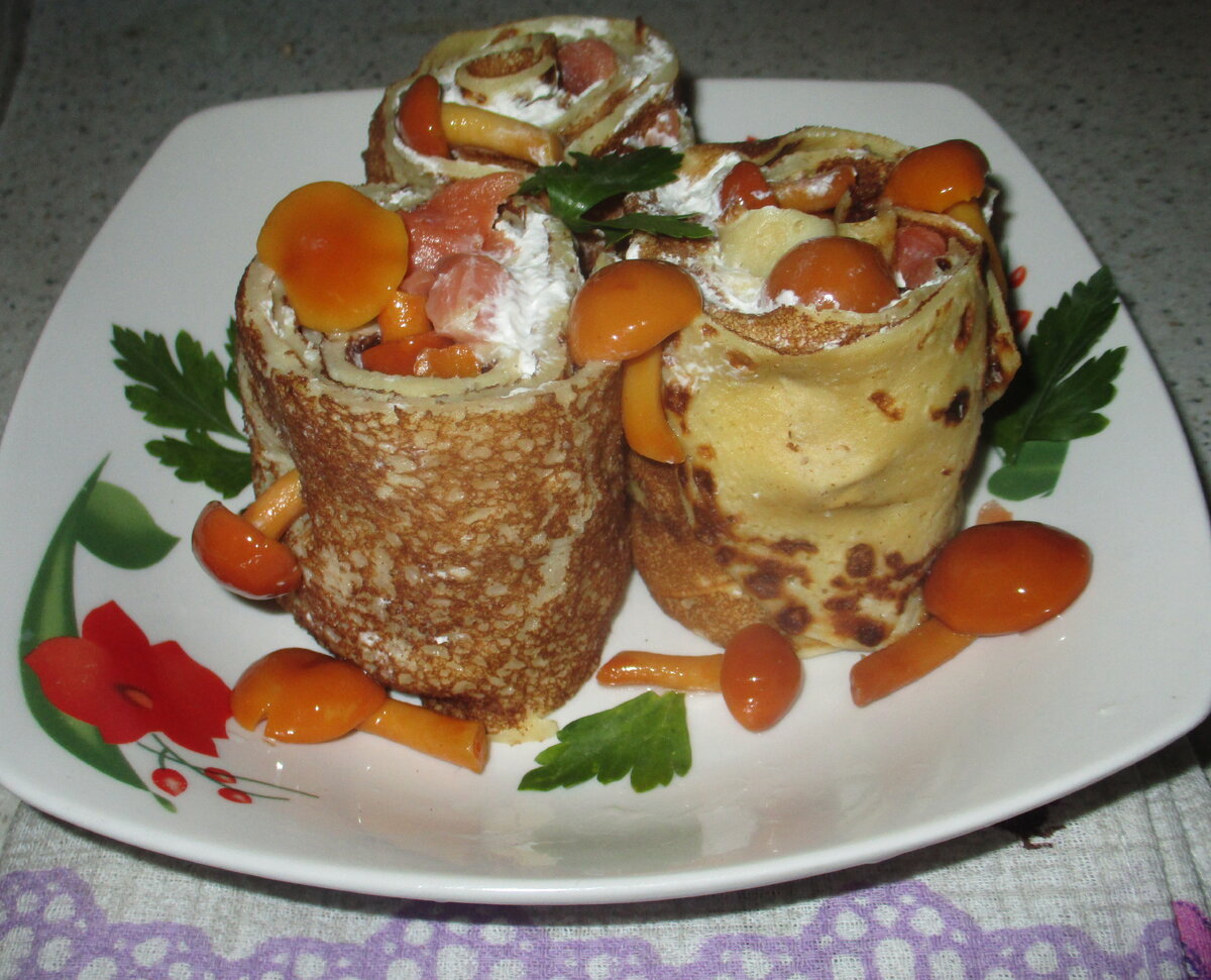 Представляем новый кулинарный шедевр — блины с малосольной форелью и маринованными опятами. Этот рецепт станет настоящей находкой для семейного обеда или праздничного стола.