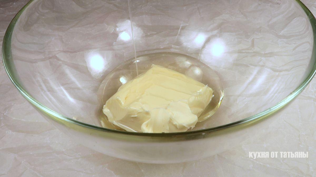Для начала очередь за основными ингредиентами. В глубокой тарелке соедините сливочное масло, которое должно быть комнатной температуры, с растительным маслом без запаха. Добавьте щепотку соли и сахар. Эту смесь удобно перемешать при помощи лопатки или венчика, но не взбивать, а просто объединить все компоненты.