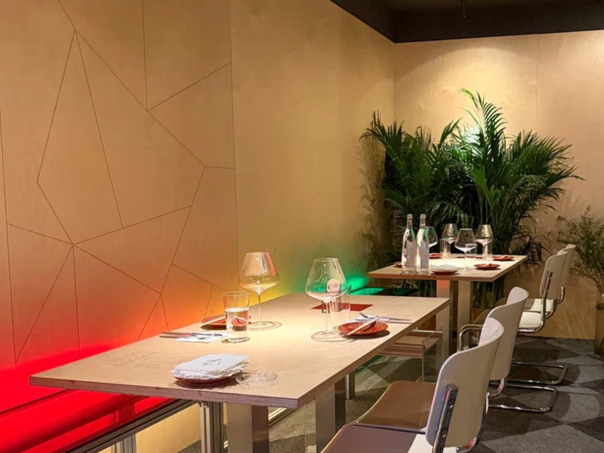 Дизайн этого ресторана разработан его владельцем, который решил строить концепцию вокруг фанеры. Стиль, выбранный для интерьера, вдохновлен баухаусом, с акцентом на чистые линии и индустриальные элементы. Фанера гармонично вписалась в этот эстетичный концепт.
