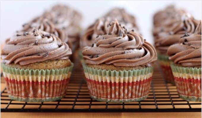 Для крема взбейте сливочное масло до легкой пышности, добавьте оставшиеся ингредиенты и тщательно перемешайте. Отправьте получившуюся смесь в кондитерский мешок и украсьте остывшие кексы. Уверены, что стоит споткнуться на таком барыше!