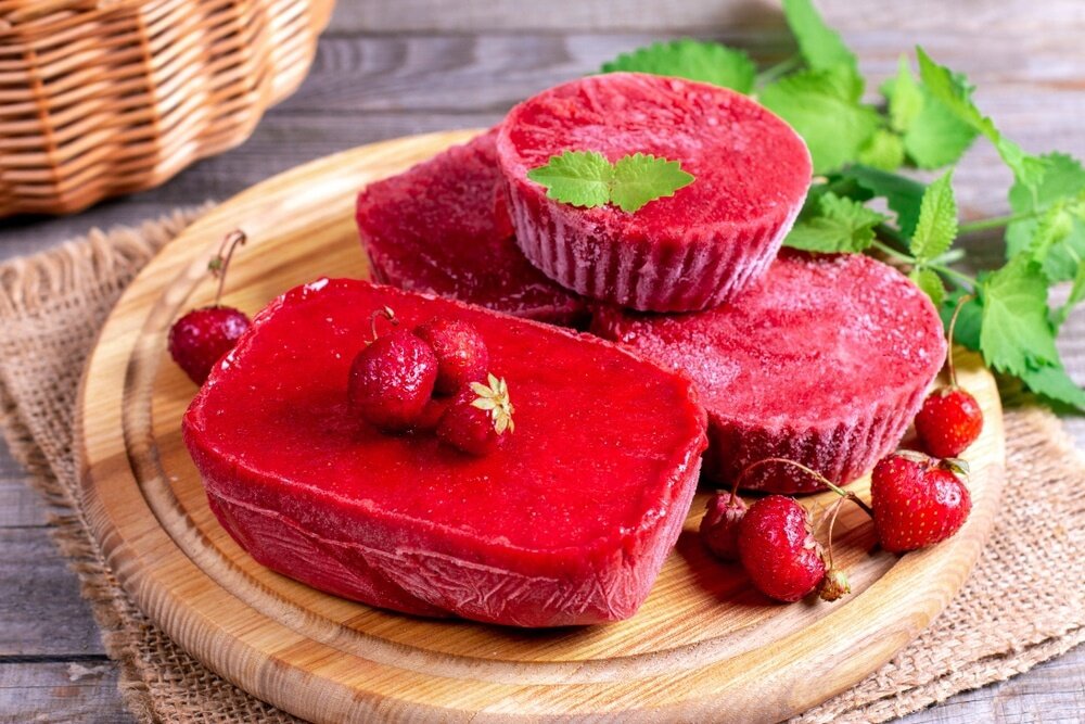 Приготовленное клубничное пюре нужно перелить в подходящие контейнеры. Отлично подойдут как круглые, так и прямоугольные формочки. После этого: