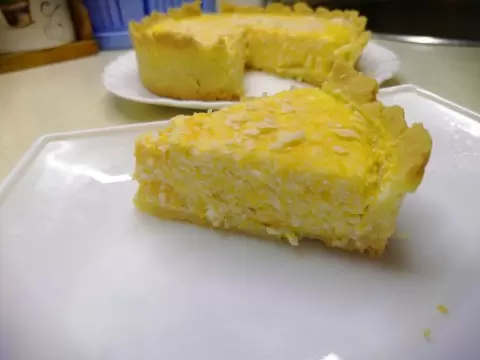 Теперь настало время для начинки. Тыква запекается в микроволновке и тщательно разминается вилкой. Для более однородной консистенции можно использовать блендер или готовое тыквенное пюре. Полученное пюре смешивается с рикоттой, корицей, белками и двумя пакетиками подсластителя. Аккуратно вводится кукурузный крахмал и все тщательно перемешивается венчиком до получения однородной массы.