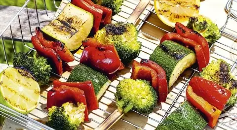 Для идеального овощного шашлыка рекомендовано использовать разнообразные свежие продукты. Люди часто выбирают брокколи, цукини и сладкий перец из-за их вкусовых качеств и текстуры. Дымный аромат, возникающий в процессе жарения, вместе с яркими нотками соевого соуса и цитрусовых, сделает этот шашлык поистине незабываемым.