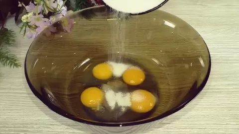 Приготовление начинается с взбивания яиц с сахаром и щепоткой соли. Затем добавляются кефир и сметана, после чего вливается растительное масло.