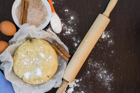 - Отрезать небольшой кусочек теста и раскатать его в тонкий пласт, не превышающий пяти миллиметров. Чем тоньше будет тесто, тем более хрустящим получится печенье.