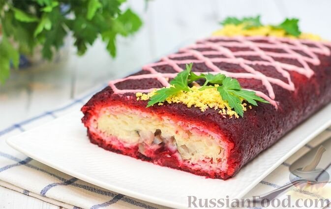 Чтобы добавить ещё больше яркости и свежести, в традиционный салат можно включить зелёное яблоко. В этом случае салат готовится с постным майонезом, но при желании можно использовать и классический вариант. А для любителей кулинарных экспериментов стоит попробовать рулет «Селёдка под шубой»: это интересная форма оформления, которая сделает блюдо ещё более привлекательным на праздничном столе.